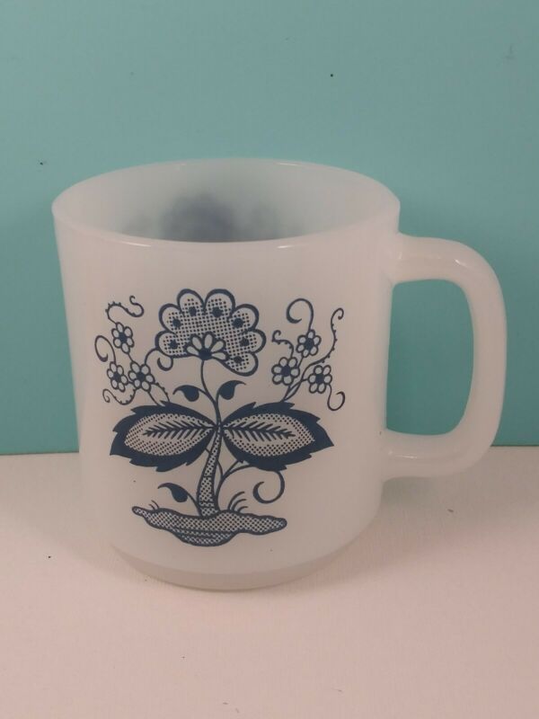 Vintage Glasbake blue onion pattern tea coffee Cups mugs set of 2