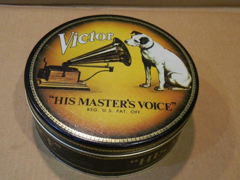 Title (ebay affiliate link): Bristol Ware RCA Victor "His Masters Voice" Round Cookie/Biscuit Tin Vintage