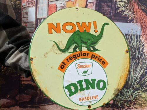 Title (ebay affiliate link): OLD VINTAGE SINCLAIR DINO GASOLINE PORCELAIN ENAMEL GAS PUMP STATION SIGN MOTOR