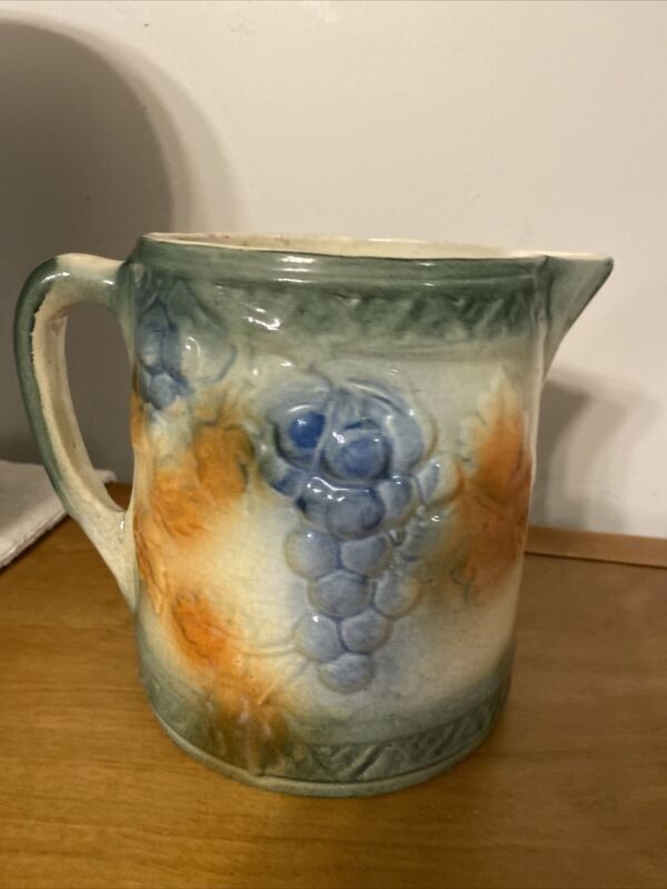 Antique Pitcher Grape Design 6 1/2†Tall Rustic