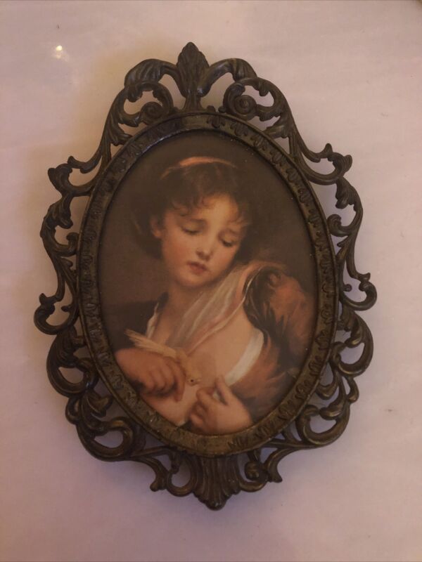 Vintage Italian Metal Frame With Victorian Girl Made In Italy Ornate Frame
