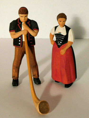 Title (ebay affiliate link): Vtg. Pair of Hand Carved Wood Folk Art Man & Woman Swiss Figures Alp Horn MINT