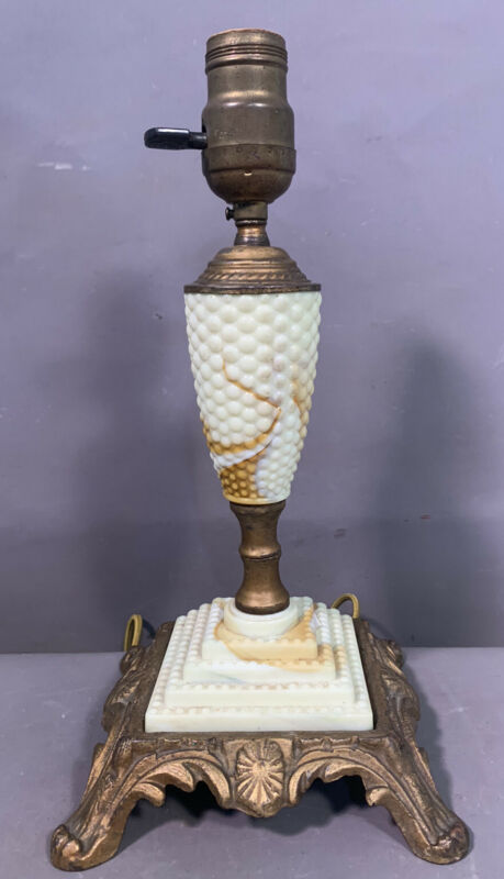 Antique ART DECO Light JADITE GREEN Hobnail SWIRL Old SLAG GLASS Desk LAMP