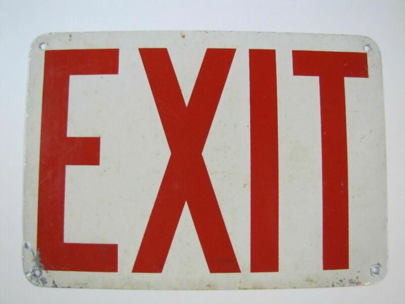 EXIT Sign Old red white metal safety advertising industrial repair shop