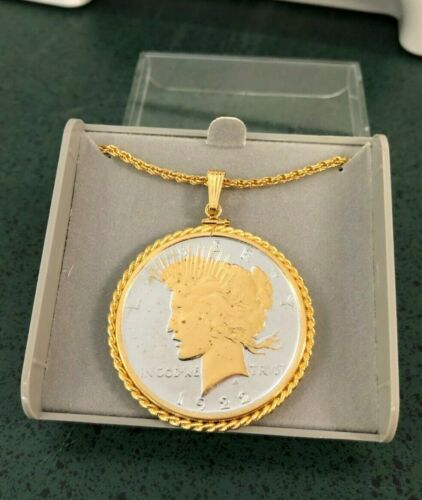 Title (ebay affiliate link): US 1922 $1 Peace Silver Dollar with Gold Enhancement Plated Rope Bezel Pendant