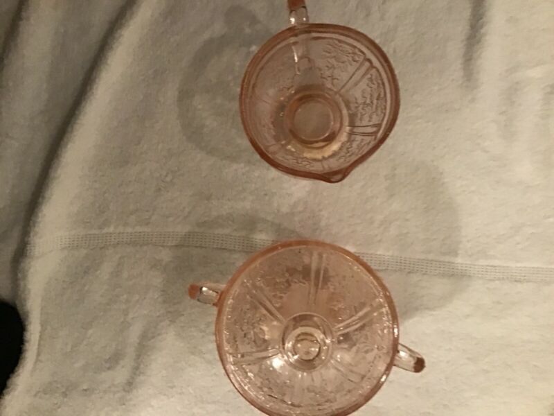 Beautiful Vintage Pink Depression Glass Sharon/Cabbage Rose Sugar & Creamer Set