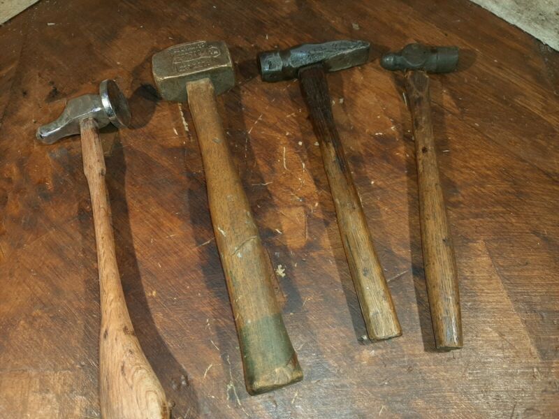 Title (ebay affiliate link): ANTIQUE SMALL HAMMERS Lot of 4 WOOD HANDLE odd shaped marked brass silver. Nr