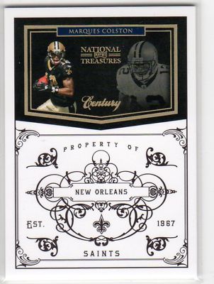 Title (ebay affiliate link): 2010 NATIONAL TREASURES Marques Colston Century 10/10