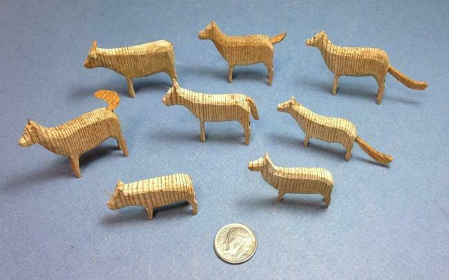 Title (ebay affiliate link): 8 different pcs TINY Hand Carved ARK ANIMALS unpainted Erzgebirge ? Africa ?