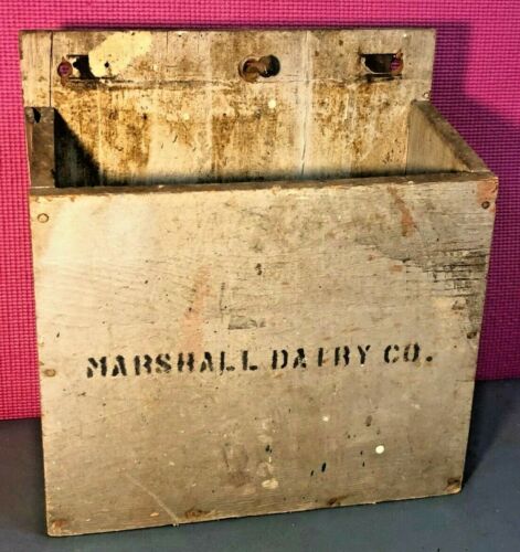Title (ebay affiliate link): Vintage Wooden Marshall Dairy Co. Porch Bottle Box Primitive Paint w/Hanger Hook