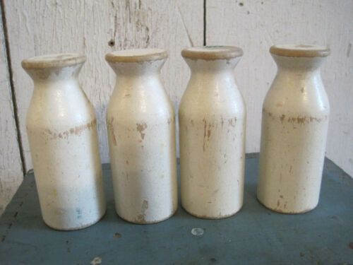 Four Primitive Vintage Original White Paint Wood Milk Jugs Great Display AAFA