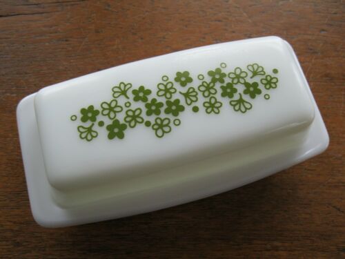 Vintage Pyrex Covered Butter Dish Lid Spring Blossom Daisy Pattern Milk Glass