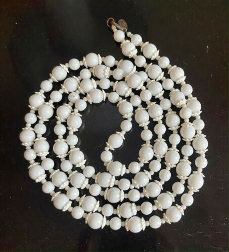 Title (ebay affiliate link): Gorgeous Vintage Miriam Haskell White Milk Glass Long Sautoir Signed 52"