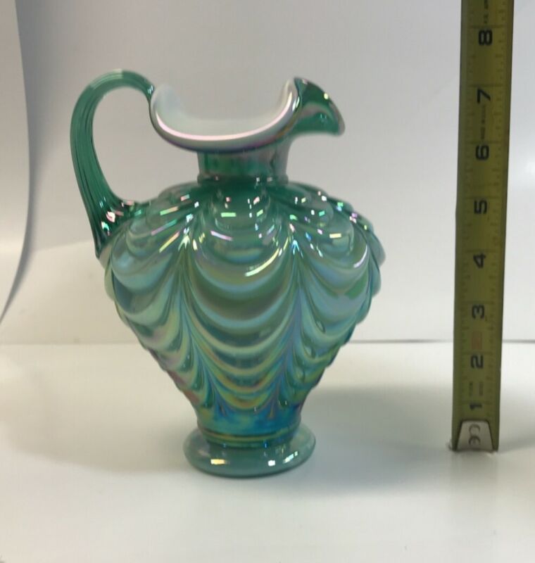 Title (ebay affiliate link): Fenton Art Glass Spruce Green Over Milk Glass Drapery Pitcher QVC Made in USA