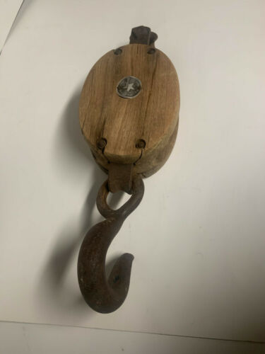 Title (ebay affiliate link): VINTAGE SINGLE WOOD AND METAL BLOCK TACKLE PULLEY HOIST