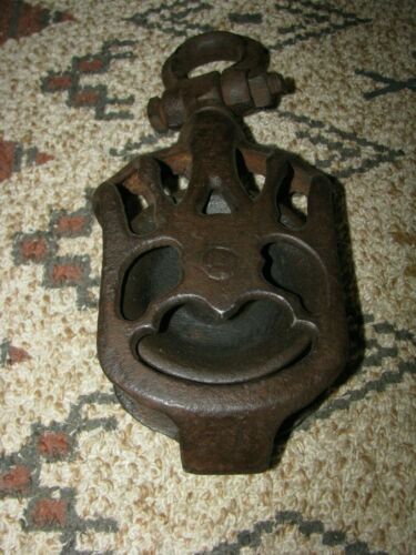 Title (ebay affiliate link): Cast Iron Barn Pulley F.E. Meyers Trolley Drop Pulley