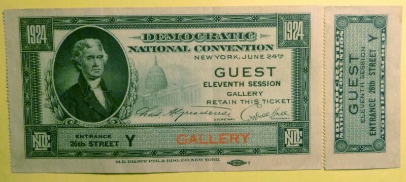 Title (ebay affiliate link): 1924 Democratic National Convention Guest Ticket VG w/stub