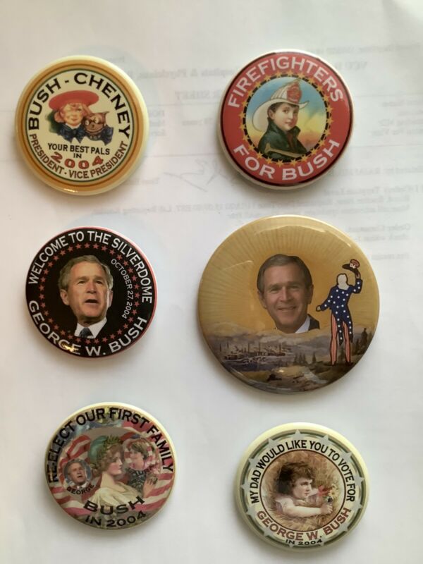 Title (ebay affiliate link): George W. Bush. 6 Political Buttons Mostly Limited Editions