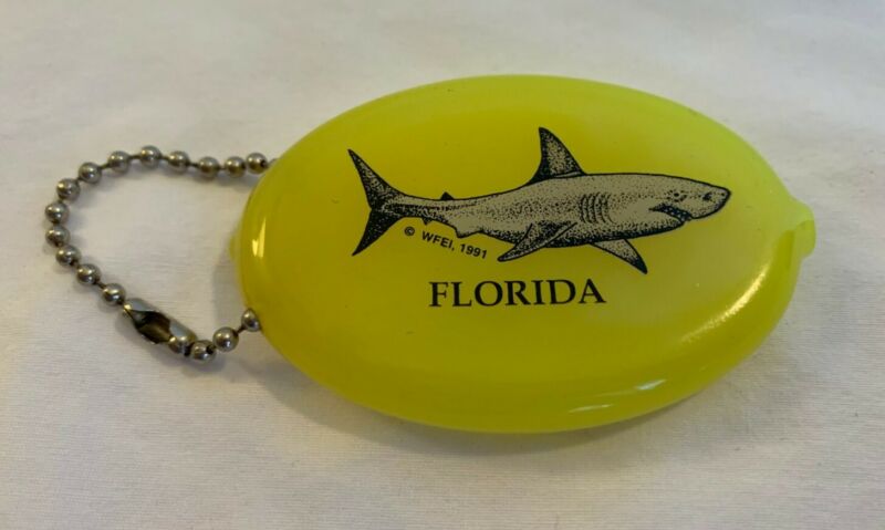 Title (ebay affiliate link): Vintage Squeeze Coin Purse Keychain Yellow Rubber Florida Shark Souvenir 1991