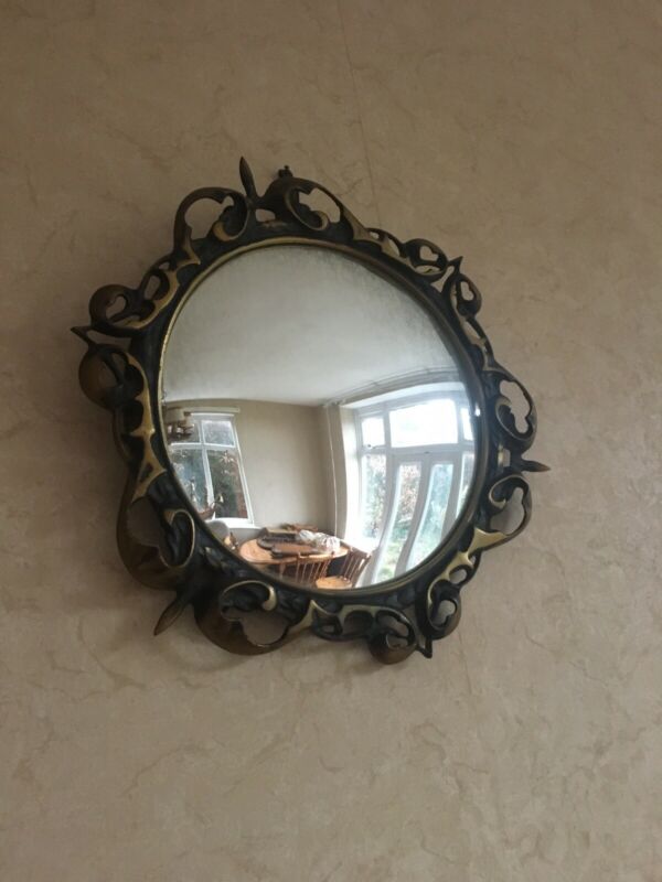 Title (ebay affiliate link): Vintage Retro Cast Brass Ornate Convex Round Mirror Wall Hanging Display Prop