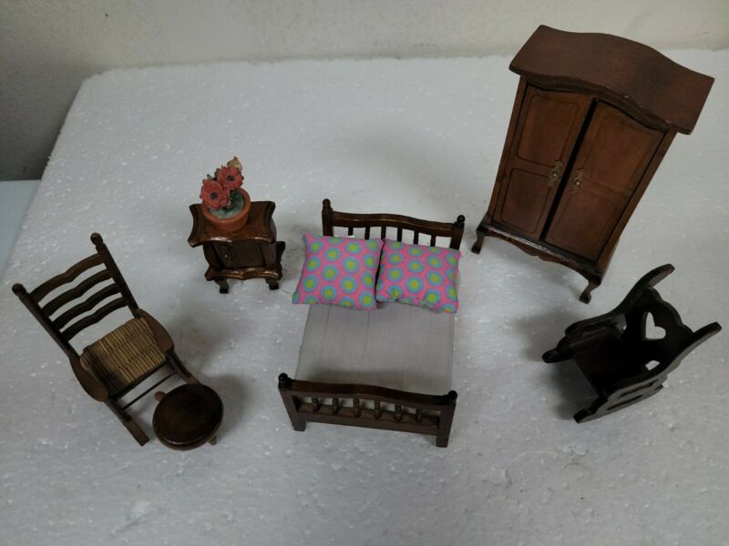 Title (ebay affiliate link): VINTAGE DOLL HOUSE MINIATURE FURNITURE WOODEN. LOT.103 bedroom