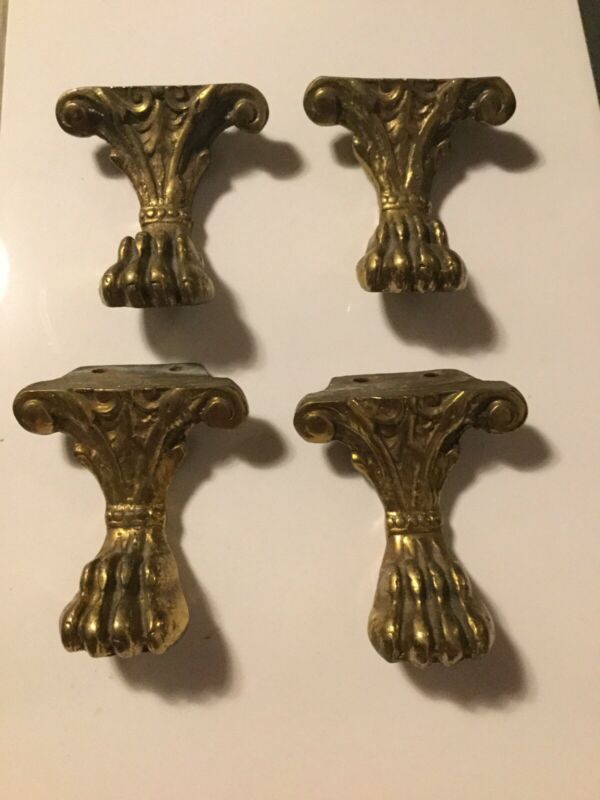 Lot of 4 Antique Brass Lion Claw Furniture Legs Victorian decorative gold