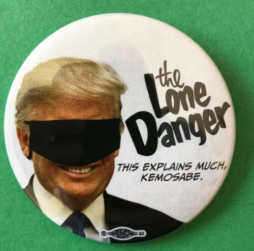 Title (ebay affiliate link): 3" Anti-Trump "The Lone Danger" Political Pinback Button