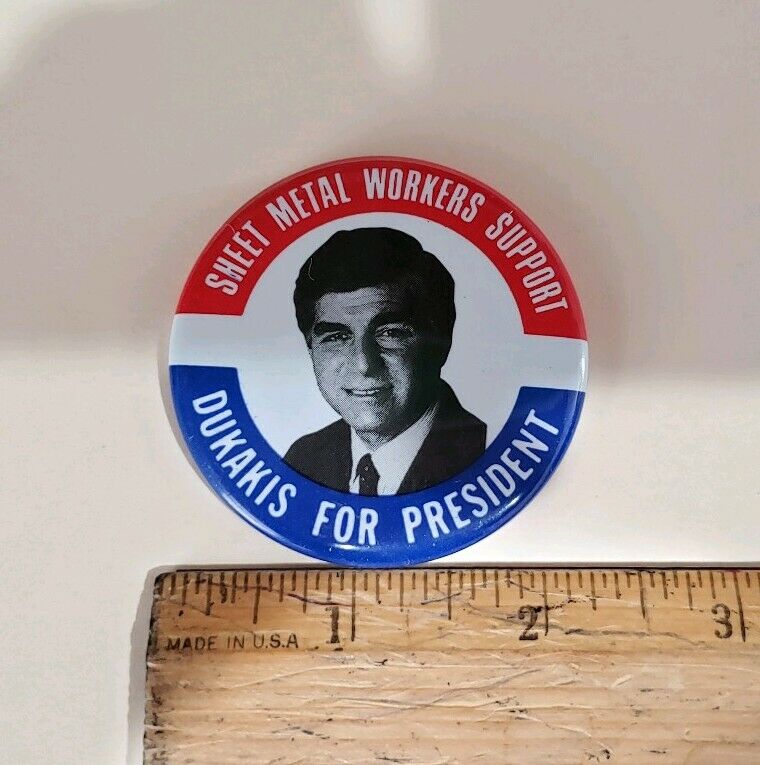 Title (ebay affiliate link): Vintage Michael Dukakis For President 1988 Campaign Button Pin Steel Workers