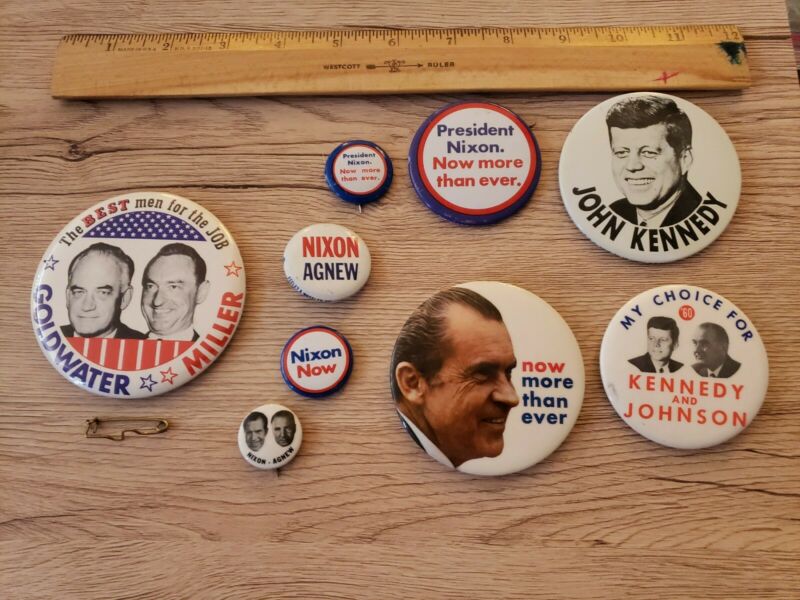 Title (ebay affiliate link): Lot of (9) Nixon -Agnew/ Kennedy - Johnson / Goldwater-Miller Political Buttons