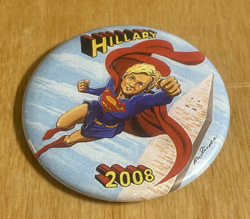 Title (ebay affiliate link): HILLARY CLINTON AS SUPERMAN 2008 BY BRIAN CAMPBELL CAMPAIGN PIN BUTTON POLITICAL