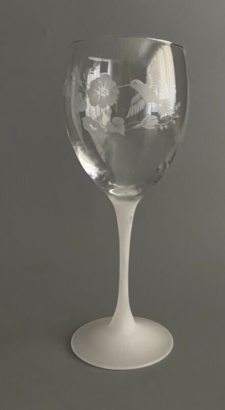Avon Hummingbird 24% Crystal Wine Glass Frosted Stem 7-3/8"