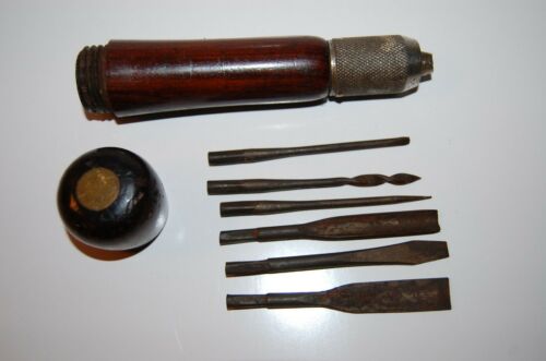 Title (ebay affiliate link): Antique Vintage Multi-Tool Interchangeable Bit Brace Driver Pin Tool Wood Handle