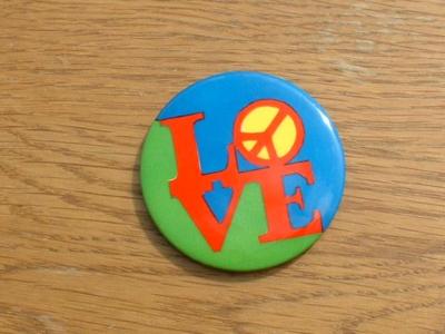 Title (ebay affiliate link): Beautiful 1960s Pop Art Love Peace Sign Pinback Button