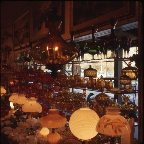 Title (ebay affiliate link): Color Slide 1965 KNOTT''S BERRY FARM FENTON GLASS STORE AMBER MILK GLASS LAMPS #5