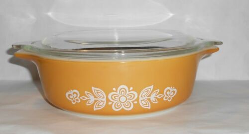Vintage Pyrex Casserole Dish Butterfly Gold 471 With Lid 1 Pint 500 ml