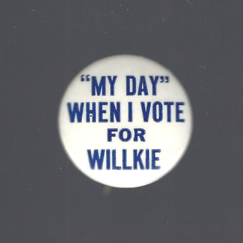 Title (ebay affiliate link): 1940 "MY DAY WHEN I VOTE FOR WILLKIE" - ANTI FDR ROOSEVELT CAMPAIGN BUTTON