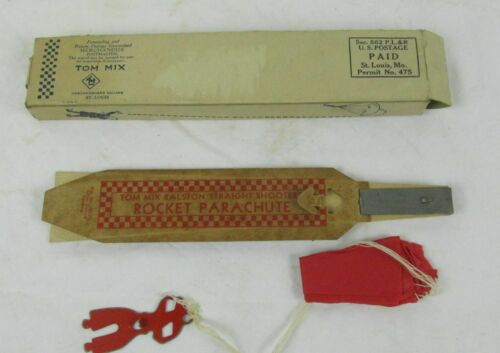 Title (ebay affiliate link): Tom Mix Rocket Parachute Chex Cereal Premium Vintage 1940''s Sling Toy w/ Mailer