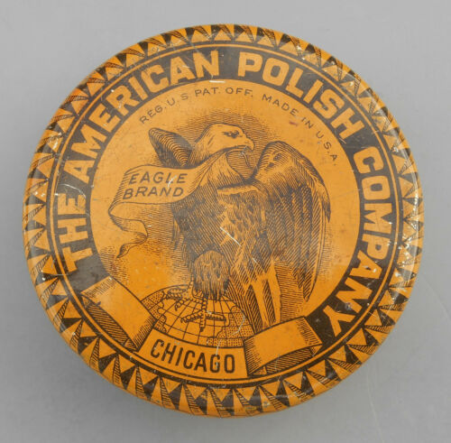 Title (ebay affiliate link): American Polish Company Shoe Polish Tin Pictures Eagle Chicago