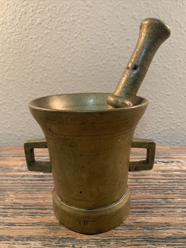 Title (ebay affiliate link): Antique Vintage Solid Brass Mortar & Pestle No.10