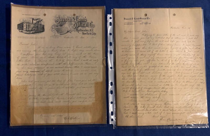 Bausch &Lomb 1895 1896 2 Letterhead Factory Microscope