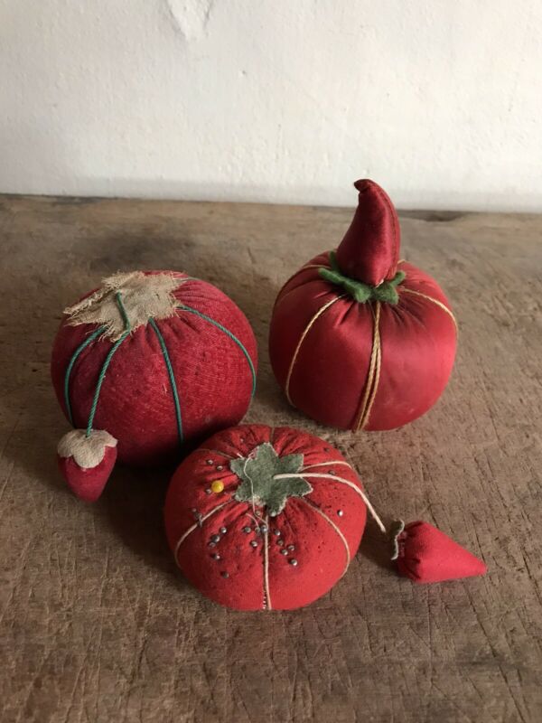 Title (ebay affiliate link): 3 Old Vintage Tomato Strawberry Pin Cushions Needle Emerys Textile AAFA Velvet