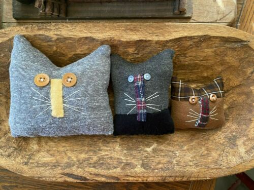 Primitive Old Home Cats Bowl Fillers Set of 3 Christmas Winter