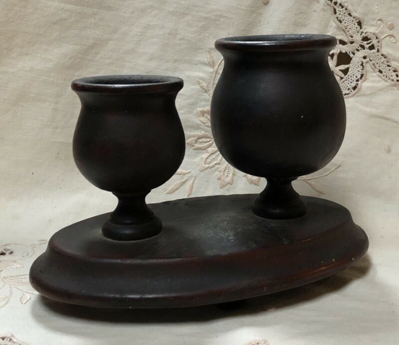 Nice Wooden Turned Double Match Holder Red & Black Grained Paint Late 1800s