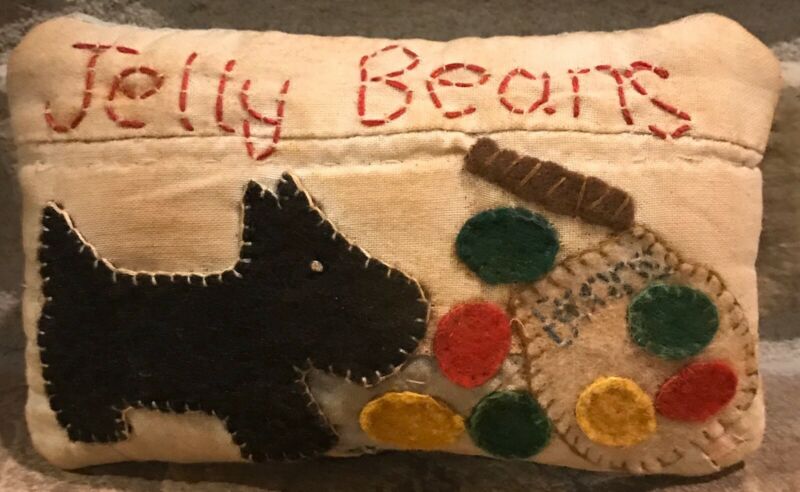 Title (ebay affiliate link): Primitive *Jelly Beans* Scottie Dog Shelf Pillow-Made From Vintage Quilt