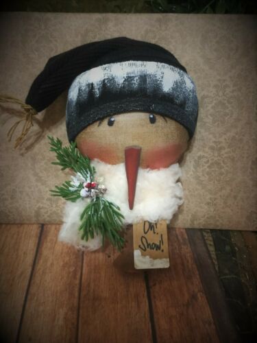 *Primitive 8x4in SNOWMAN HEAD BOBBIN FABRIC HANDMADE Country old rusty doll*