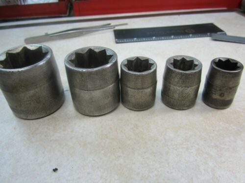 Vintage Snap-On 1/2" Drive Sockets: 8 point tapered 5 pcs date codes 1929-1932