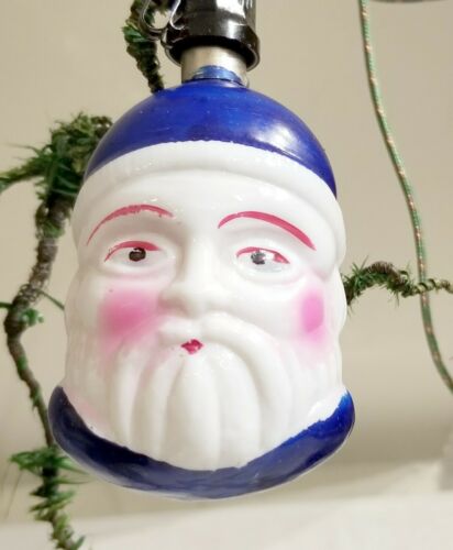 Title (ebay affiliate link): Double-sided Blue Santa Head. C-6 Miniature. Milk Glass, Japan. Not Working.