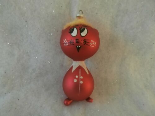 VINTAGE 4" FIGURAL RED CAT ITALY BLOWN MERCURY GLASS CHRISTMAS ORNAMENT