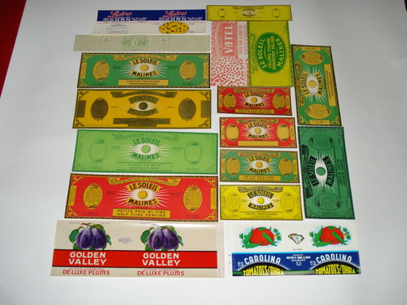 75 Old VINTAGE CAN LABELS - All Different. =,,.......