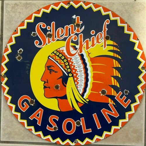 Title (ebay affiliate link): VINTAGE SILENT CHIEF GASOLINE PORCELAIN NATIVE SERVICE STATION PUMP CLASSIC SIGN
